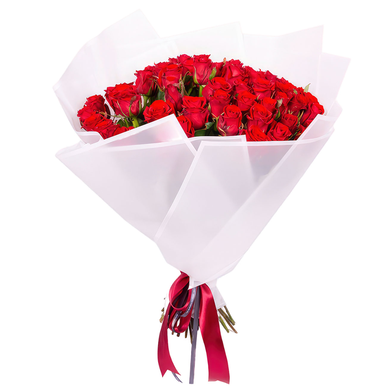 Роза Эквадор красная. Упаковка (лента, пленка, крафт, сетка, пленка матовая)