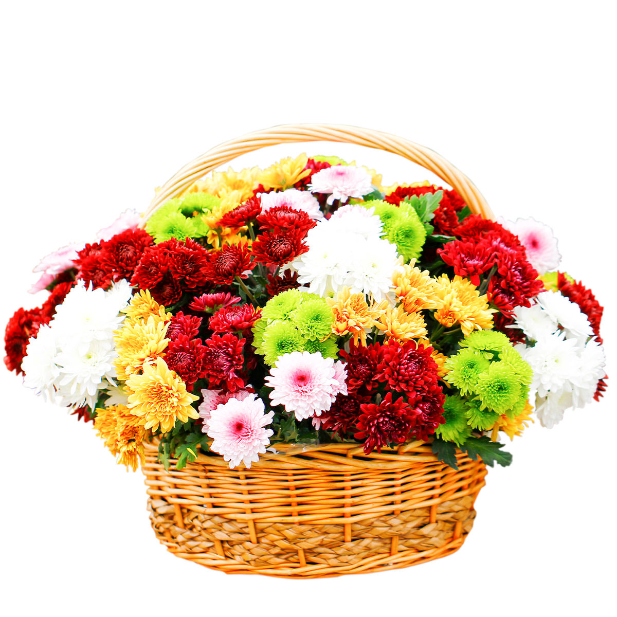 Хризантема разных цветов. Упаковка (Корзина, оазис, ящик).