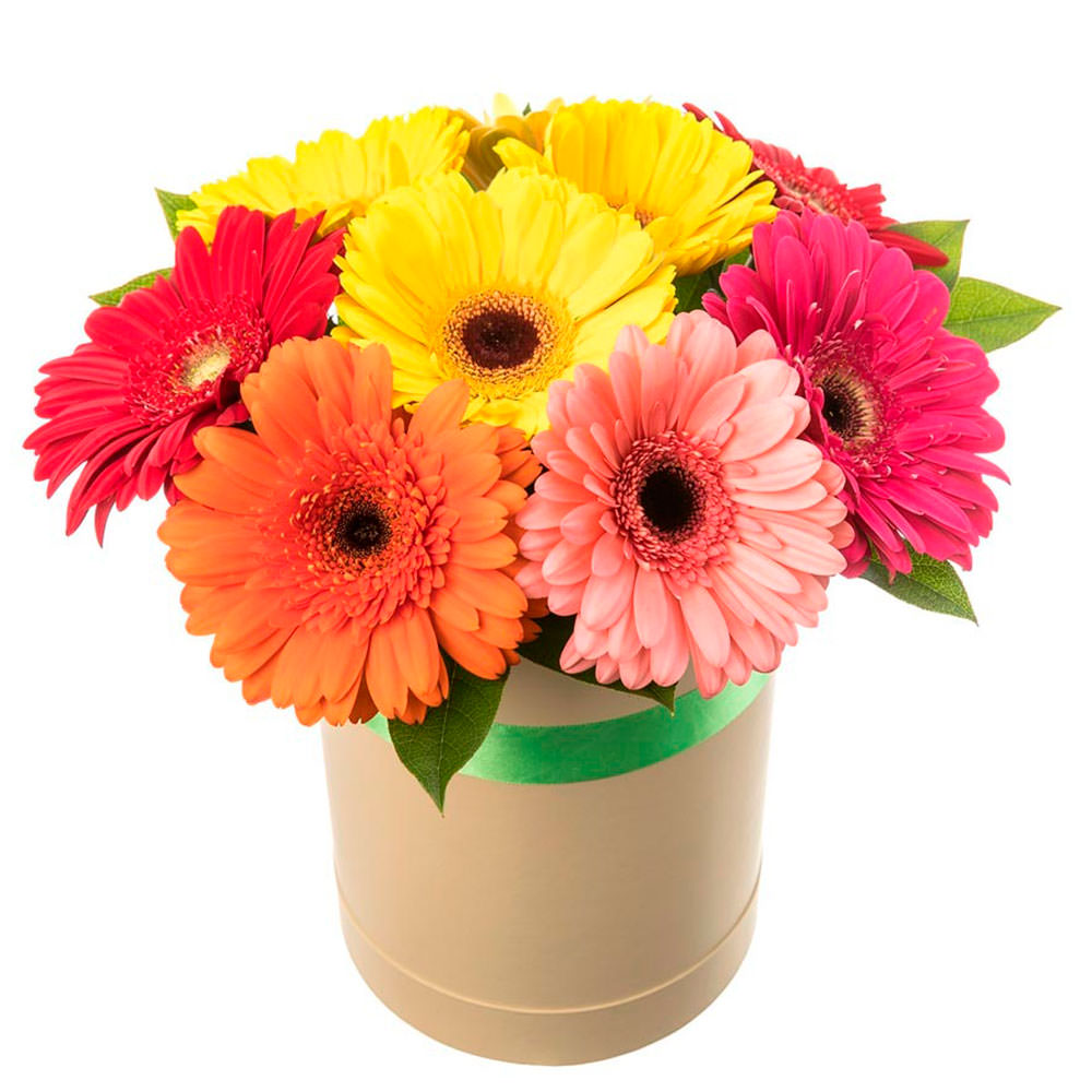 Цветы в коробке «Микс гербер» с доставкой по г Олонец: вы можете заказать букет в гипермаркете цветов «Флормания» по цене от 2990 руб.