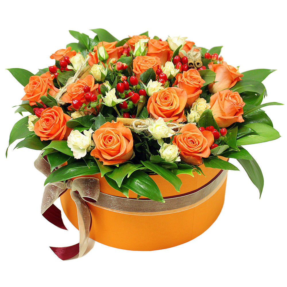 Цветы в коробке «Оранжевый закат» с доставкой по г Олонец: вы можете заказать букет в цветочном интернет-магазине «Флормания» по цене от 2990 руб.