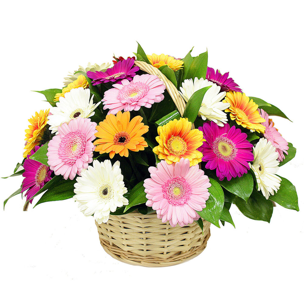 Цветы в корзинке «Микс гербер» с доставкой по г Олонец: вы можете заказать букет в супермаркете цветов «Флормания» по цене от 3590 руб.