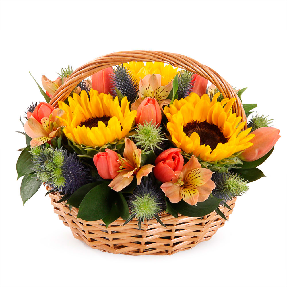 Цветы в корзинке «Солнечный день» с доставкой по г Олонец: вы можете заказать букет в цветочном гипермаркете «Флормания» по цене от 3590 руб.